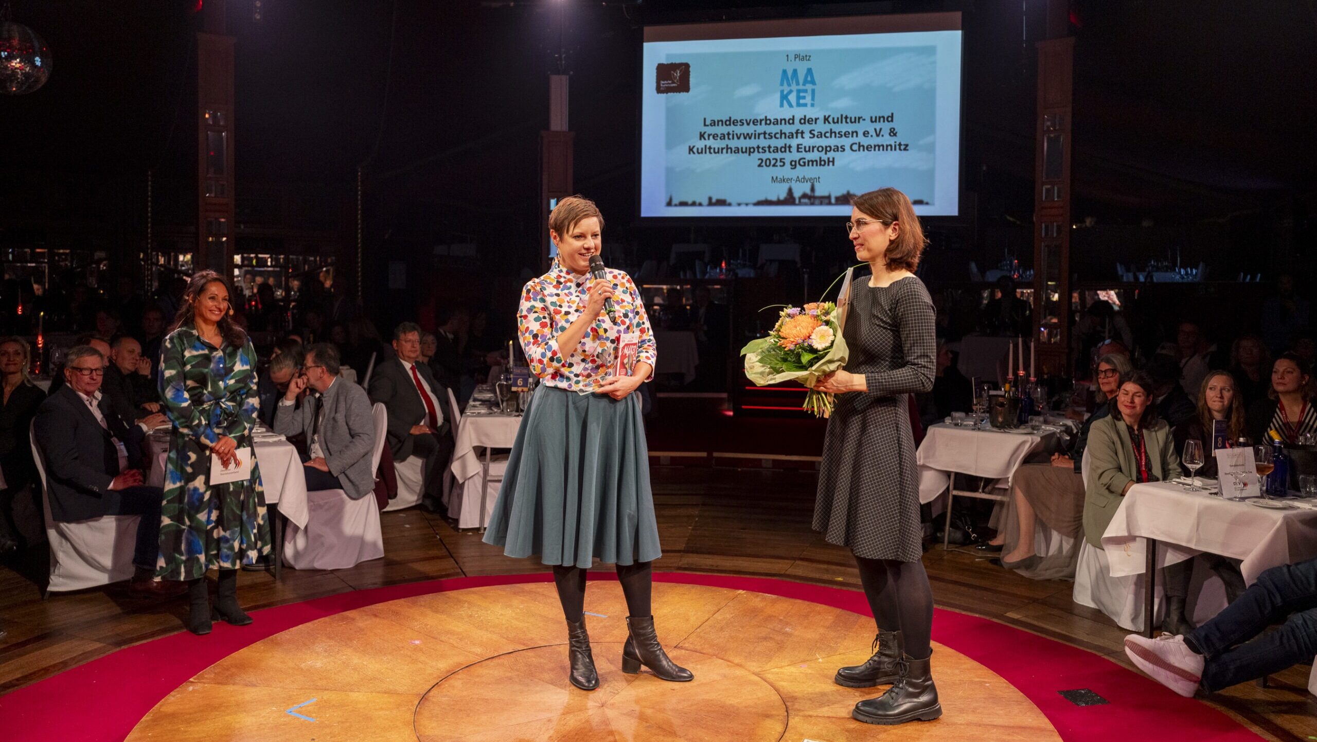 Der Maker-Advent von Makers, Business & Arts des Landesverbands der Kultur- und Kreativwirtschaft Sachsen e.V. und der Kulturhauptstadt Chemnitz 2025 hat den Deutschen Tourismuspreis 2025 gewonnen. Die Preisverleihung fand feierlich im Rahmen des Deutschen Tourismustags am 19.11.2025 in Saarbrücken statt. Der Preis wird jährlich durch den Deutschen Tourismusverband (DTV) ausgelobt, um zukunftsweisende Projekte und Produkte im Deutschlandtourismus zu fördern.